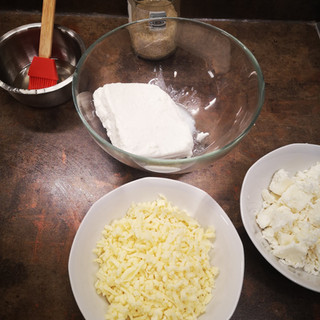 לשים על הדף כף גדושה של תערובת הגבינה ולסגור לצורת פרח (ראו סרטון)