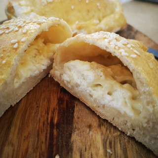 לשים כף מילוי, לסגור, למרוח חלמון, לפזר שומשום וממש מעט מלח גס.